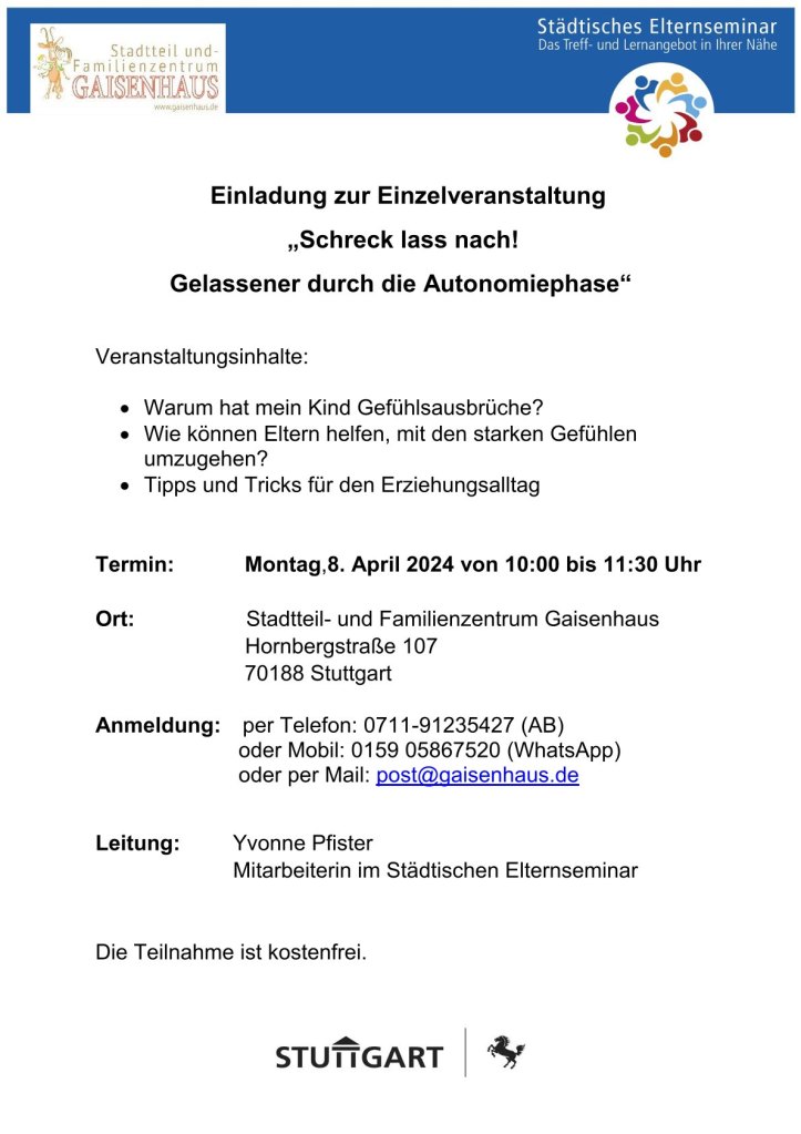 „Schreck lass nach! Gelassener durch die Autonomiephase“ März 27, 2024Juli 12, 2024 gaisenhaus Ähnliche Beiträge