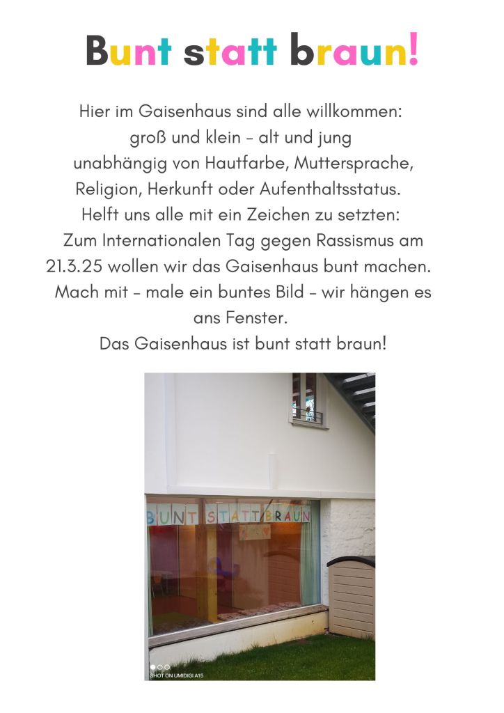 internationaler Tag gegen Rassismus am 21. März im Gaisenhaus März 14, 2025 gaisenhaus Ähnliche Beiträge