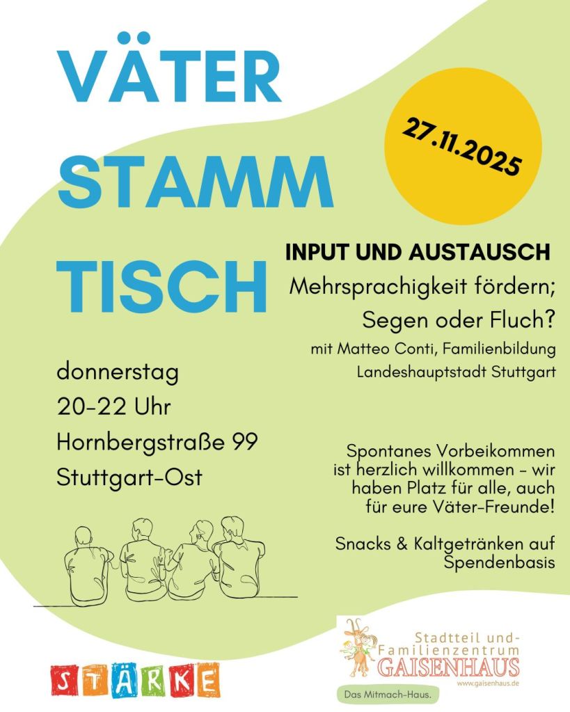 Thema: Mehrsprachigkeit in der Erziehung; klug und weltoffen durch Mehrsprachigkeit? Referent: Matteo Conti, Familienbildung, https://gaisenhaus.wordpress.com/vaterstammtisch/?preview=true