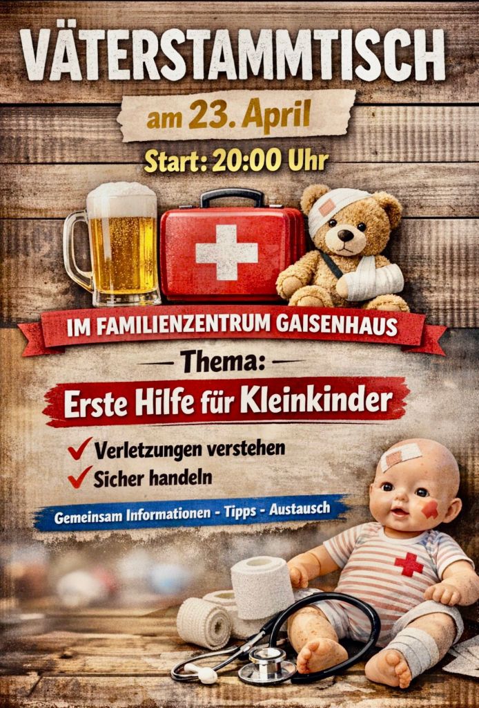 Thema: Erste Hilfe für Kleinkinder; Verletzungen verstehen, sicher handeln mit Daniel Triloff, Vater von 3 Kindern, Rettungssanitäter.