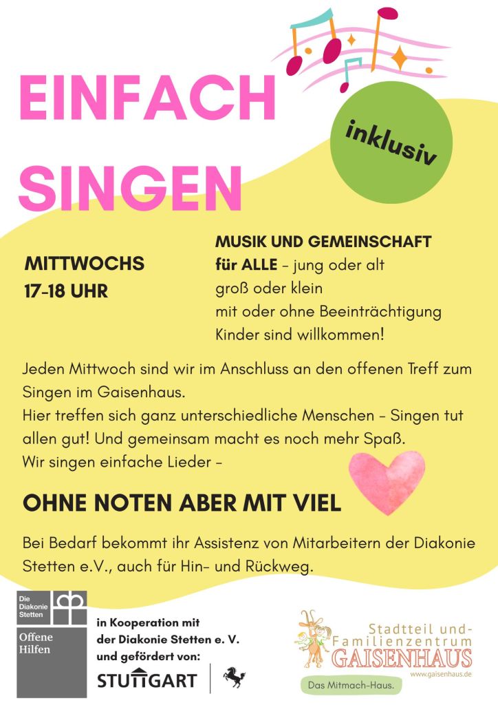 Frauen-Chor Stimma Dizza. Wir proben immer dienstags von 19:30 – 21:00 Uhr in den Gemeinderäumen unter der Gaisburger Kirche. Neue Sängerin sind herzlich willkommen!