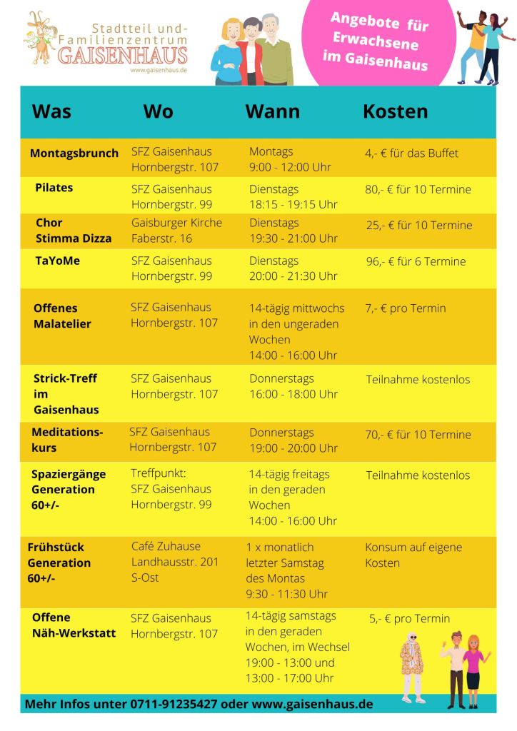 auf dieser Seite finden Sie Angebote, an denen sowohl junge Menschen, Erwachsene und ältere Menschen teilnehmen können.