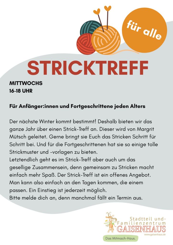 Stricktreff ← ZurückVielen Dank für deine Antwort. ✨ Name(erforderlich) E-Mail(erforderlich) Anmeldung zum (erforderlich) Stricktreff Weitere Details Anmeldung sendenEinreichungsformular Δ